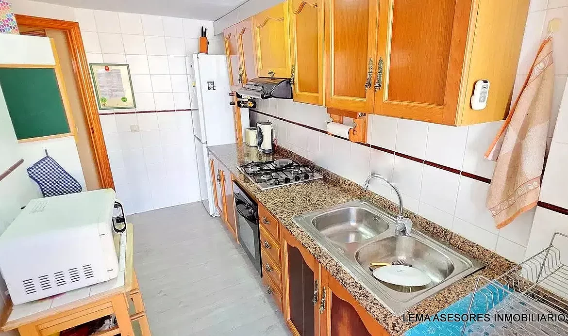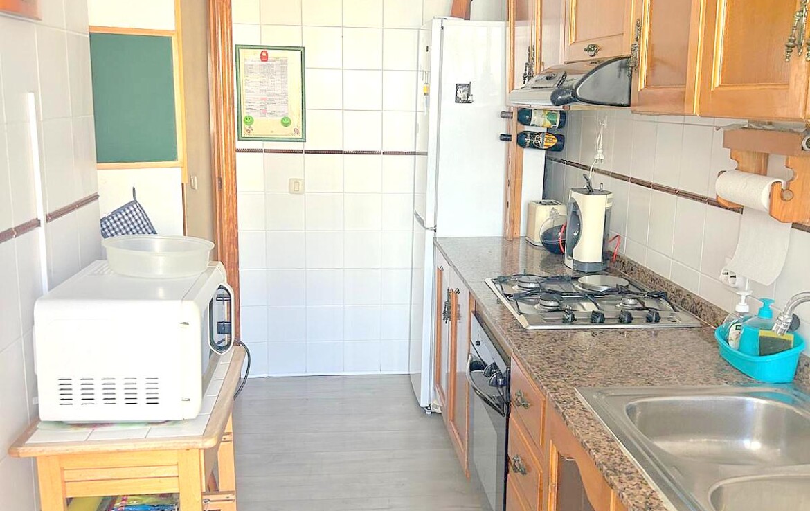 Piso con 102 m2, 2ª planta con ascensor Distribución: Amplio salón/comedor con salida a balcón terraza de 4 m2. 3 habitaciones (2 de ellos con grandes ventanales orientados a la calle). Cocina completa independiente con acceso a terraza/lavadero. 2 baños completos (1 en suite). Armarios empotrados.